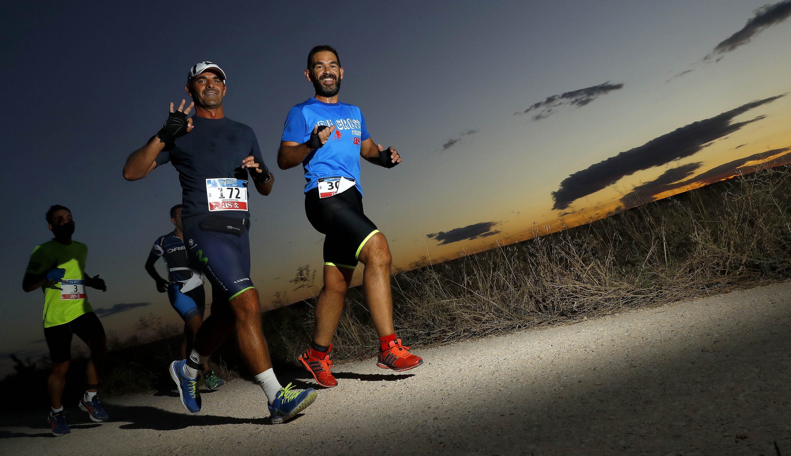 El pistoletazo de salida de este primer Du Cross Leganés tuvo lugar a pocos minutos de la puesta de sol con 352 participantes afrontando un reto especial: el de correr y pedalear en ausencia de luz. Los primeros 5,2 kilómetros de carrera mientras anochecía les permitieron adaptar la vista a esta circunstancia, pero pronto tuvieron que agudizar los sentidos al oscurecerse completamente el recorrido en los 18 km de MTB y 2,1 km de carrera restantes.
