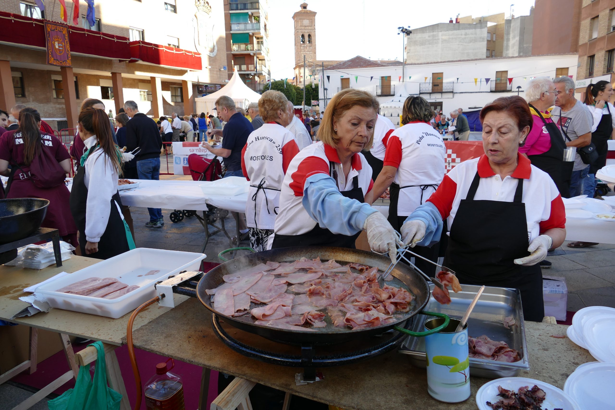 En los desayunos populares de la Plaza de España se han servido 7.725 en los tres días. En el primero, 2.925, en el segundo, 2.200 y en el último, 2.600 raciones de huevos con beicon.