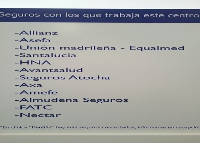 Cuentan con numerosos seguros médicos para que más personas puedan llegar a su consulta, siendo de las pocas clínicas en la zona Sur de Madrid que cuenta con especialistas en periodoncia, odontopediatria, implantes, odontología en general, ortodoncias, estética dental , blanqueamientos dentales …